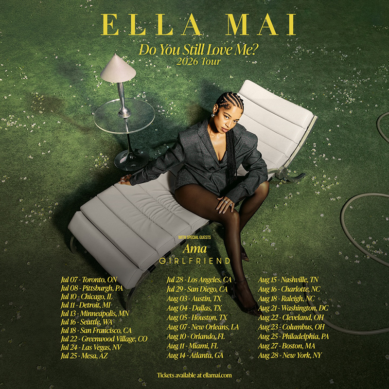 “DO YOU STILL LOVE ME? US 2026 TOUR coming to a city near you this summer with my fellow lovergirls @amamissya and @girlfriend.____ 💛head to ellamai.com/tour now to sign-up for early access & presale!all tickets on sale THIS FRIDAY!UK & EUROPE dates coming shortly, can’t forget home … see you soon 😘”